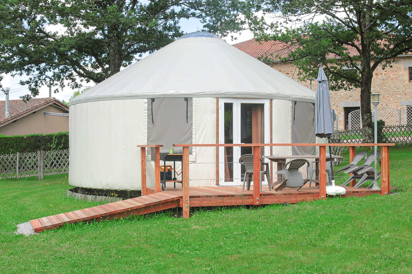 Pour des vacances atypiques dans un hébergement insolite, le Camping municipal de Saint Mathieu en Haute Vienne vous propose 3 yourtes contemporaines de 43 m² pour 4/6 personnes, tout confort.